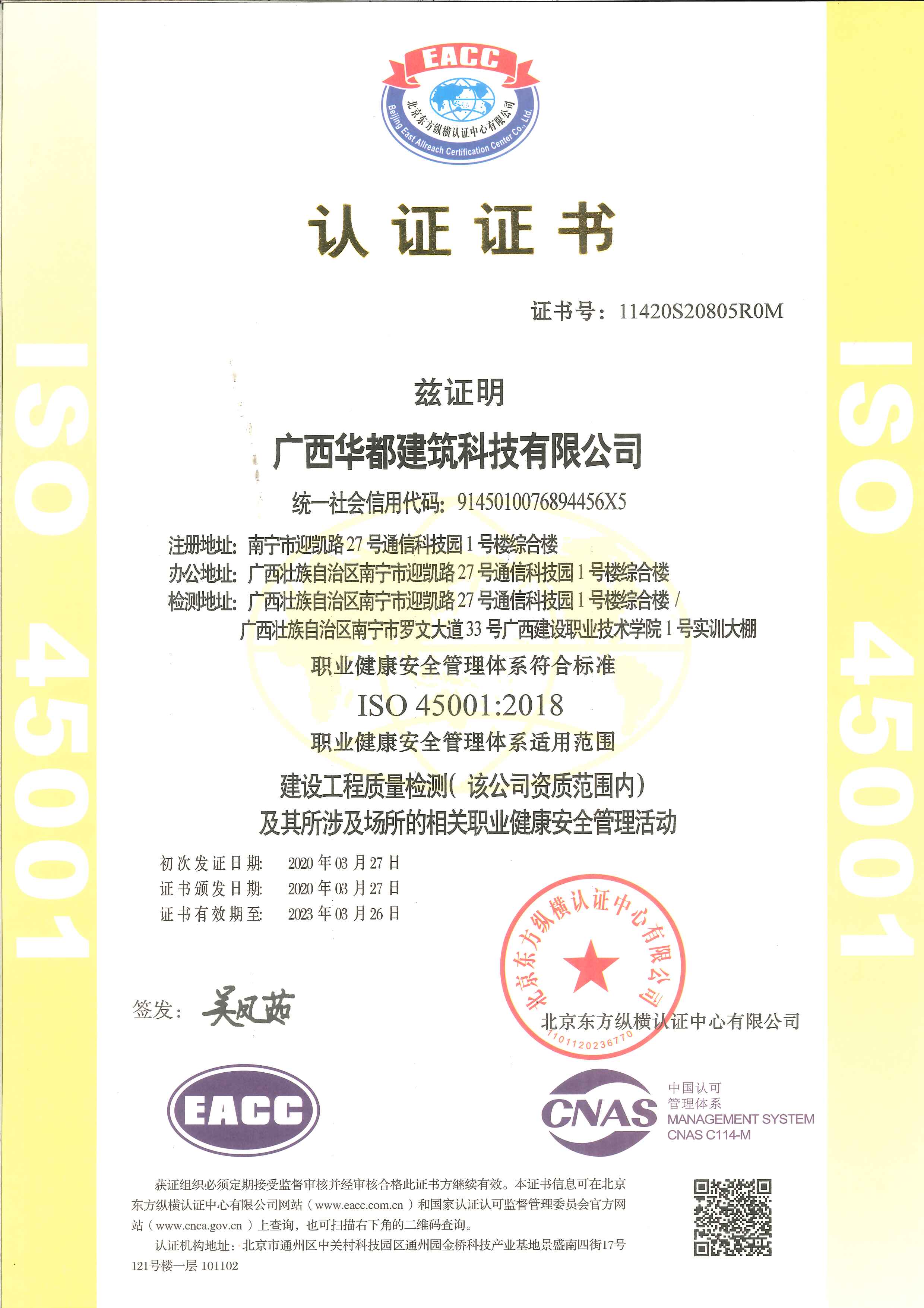 ISO45001認證證書