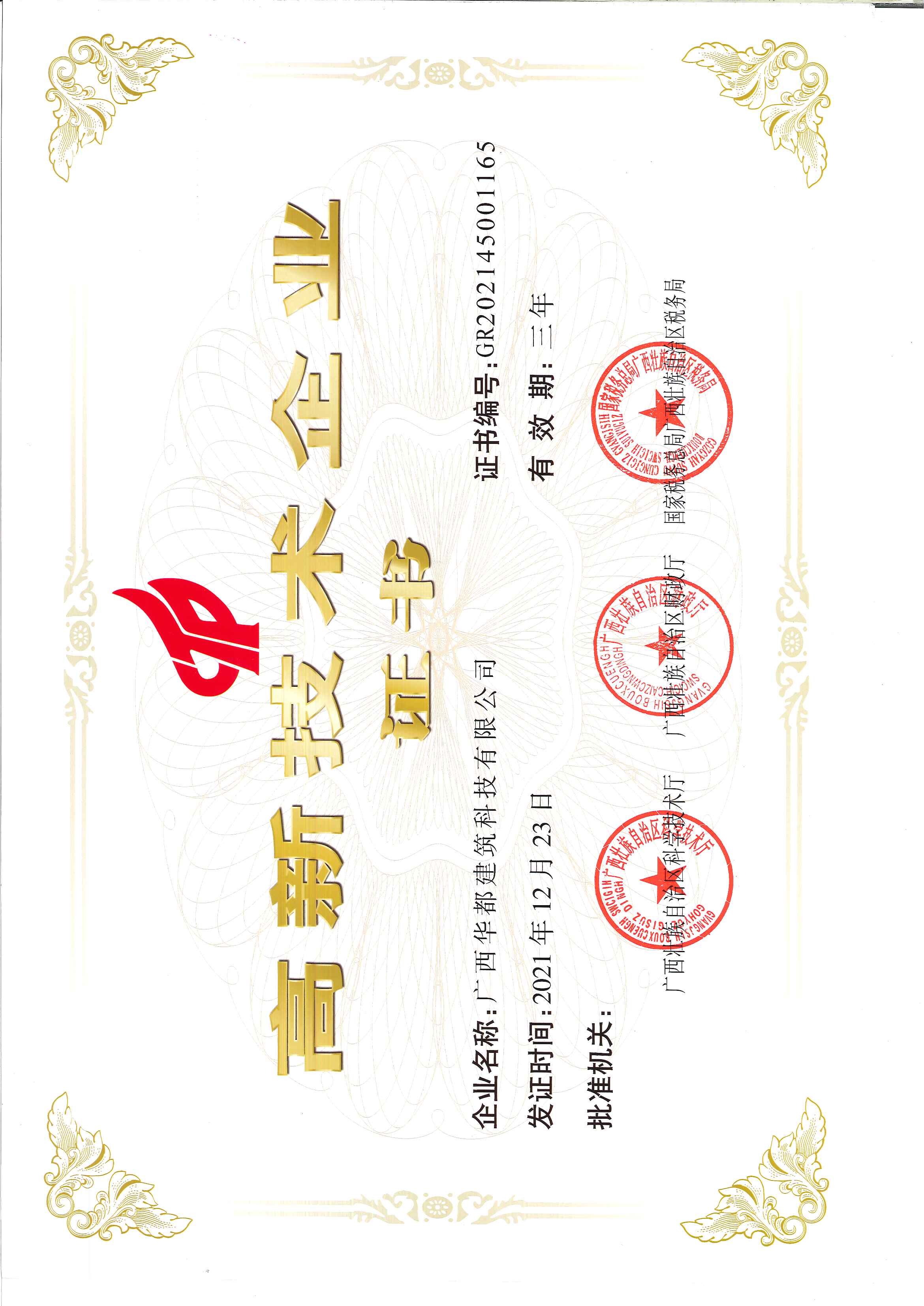 高新技術企業證書