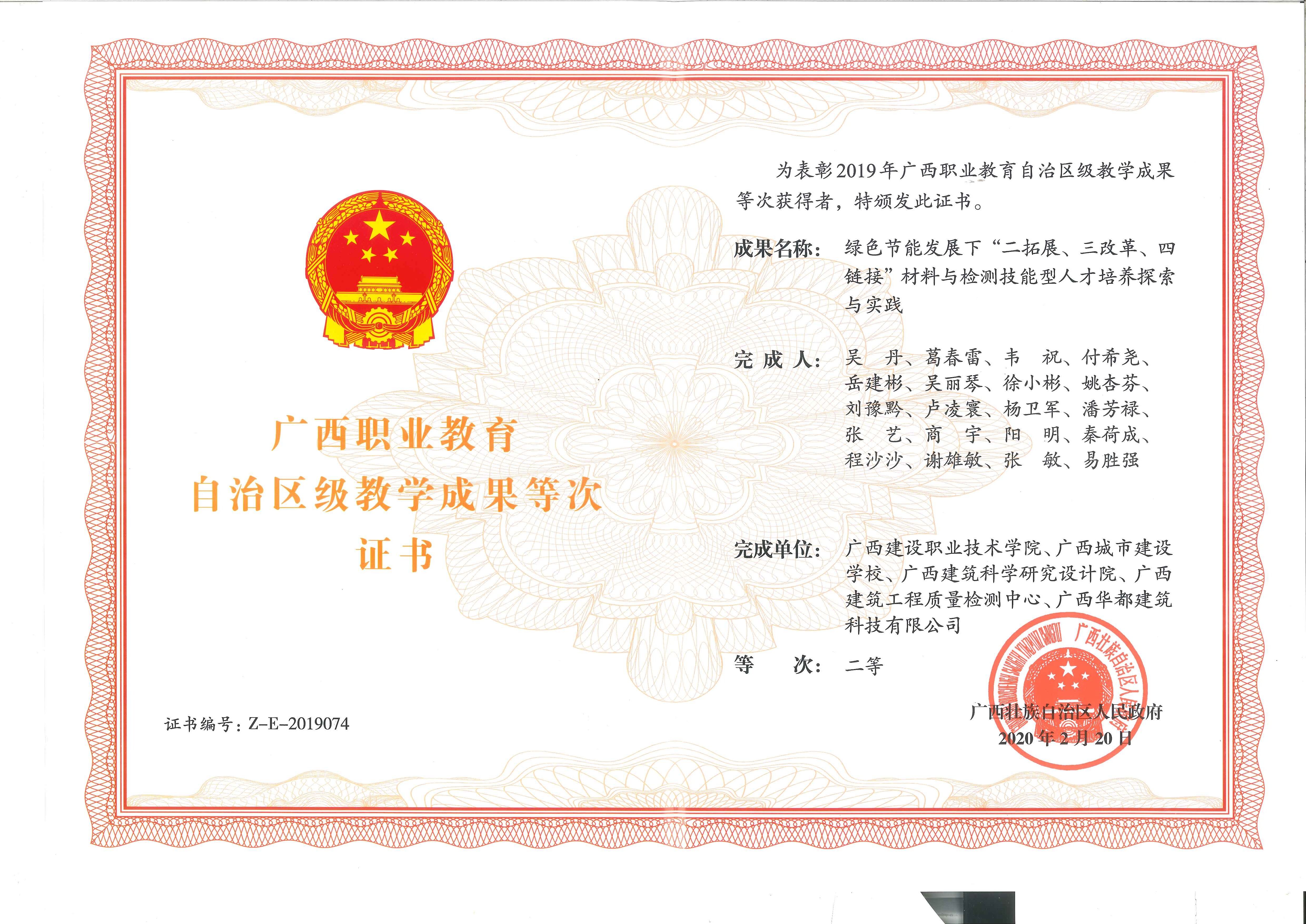 自治區級教學成果等次證書
